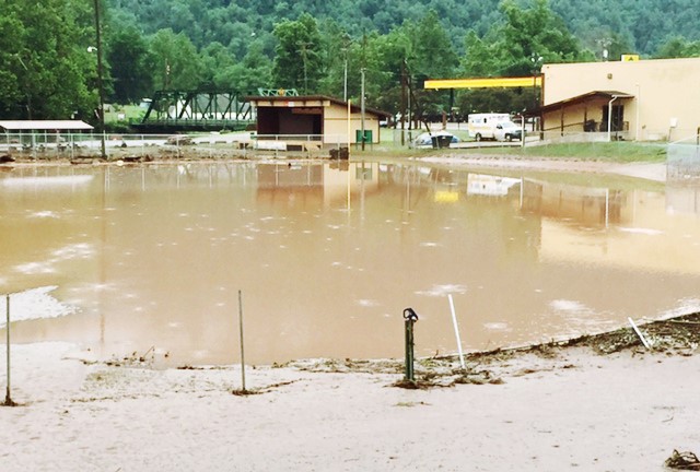 Baker’s Island, located in Webster Springs, West Virginia is a beloved recreational area for the community, tourists, and more. The high water that swept through the southern part of West Virginia in June 2016 left devastation in most of Webster County particularly hitting Baker’s Island hard. Baker’s Island Recreational Area includes a baseball field, basketball courts, picnic pavilions, grandstand, walking trail, playground, swimming pool, public river access and hosts many area events. Most of Baker’s Island was under more than two feet of water, causing severe damage to the property and facilities.