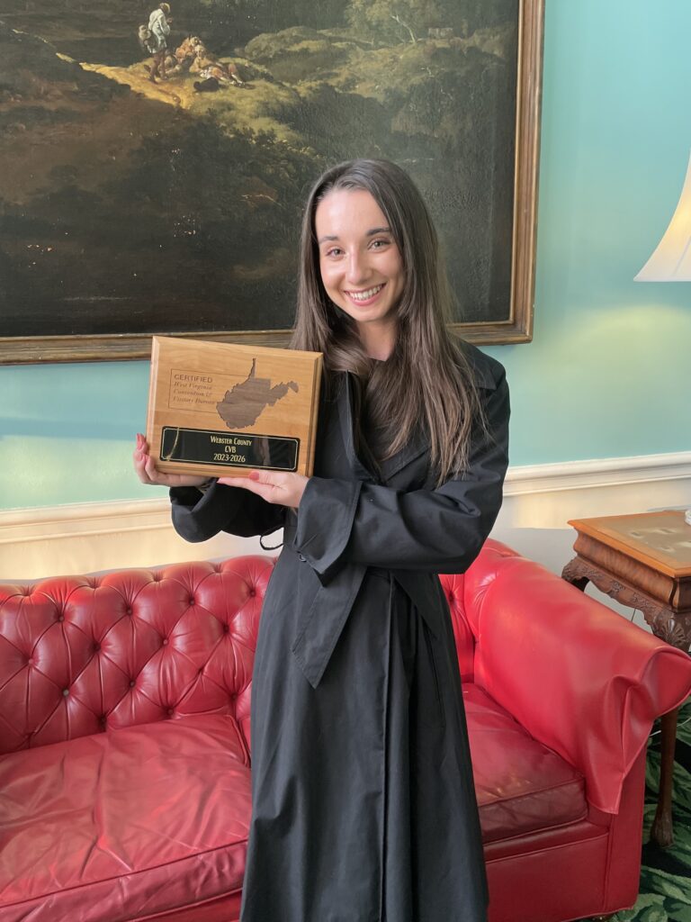 While there, Alex Fliegel was awarded a plaque acknowledging Webster County’s Conventions and Visitors Bureau (CVB) accreditation. For the first time in Webster County history, we now join 36 other counties in WV that already have accreditation. It is a lengthy process for the position to meet all the necessary numerous requirements set forth by the WV Association of CVBs board of directors. The certification, which must be renewed every three years, allows the tourism funds garnered through hotel motel taxes to be utilized within the county. The accreditation requirements also get updated regularly to hold each CVB accountable to their community, county, and the state.