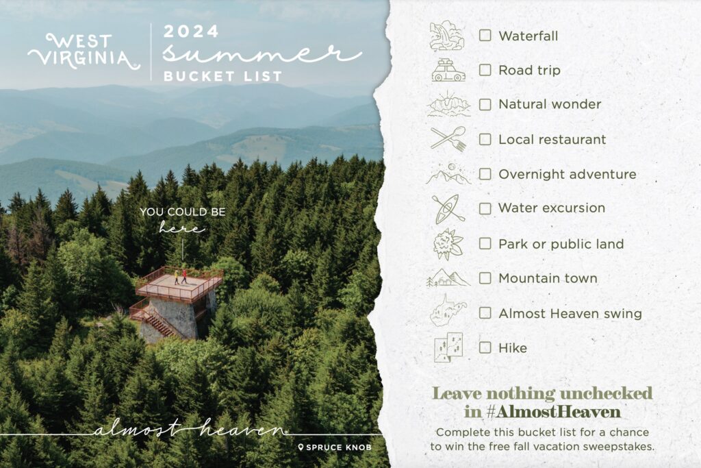 Once you’ve completed your bucket list, submit it to WV Tourism to be entered into their sweepstakes