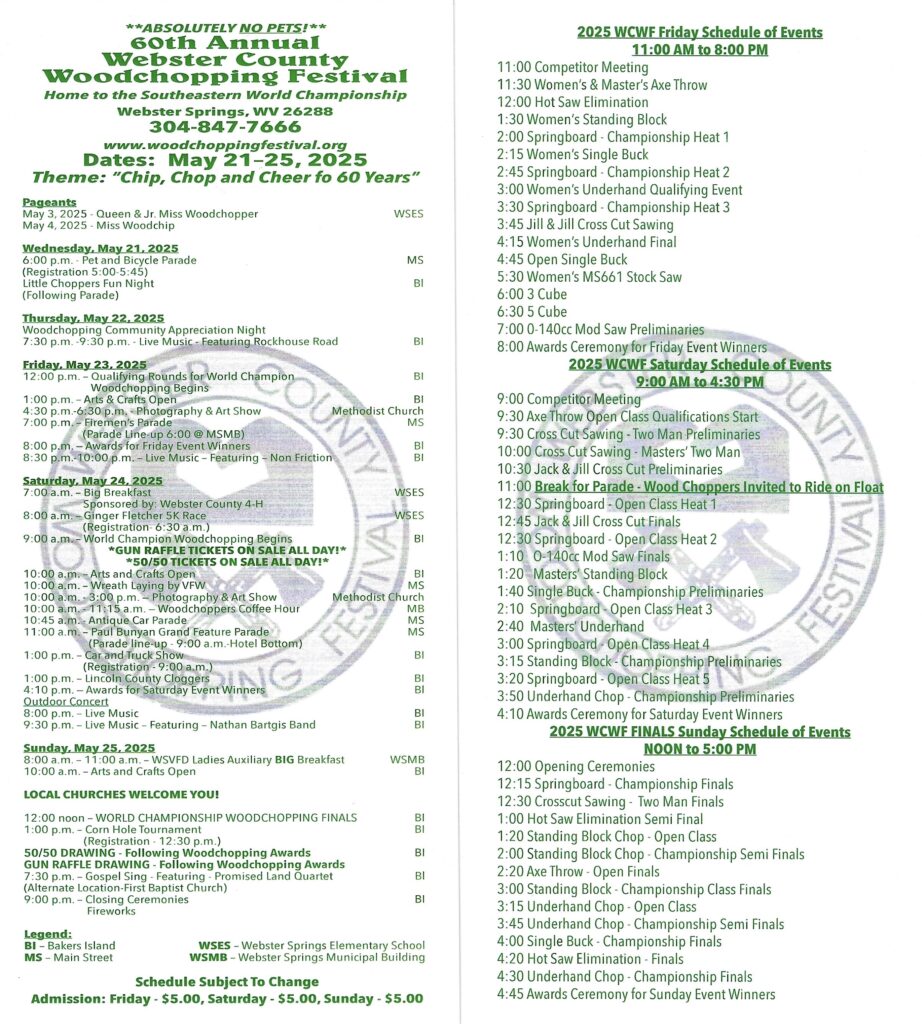 One of the biggest Webster County traditions is celebrating 60 years of Woodchopping on May 23-25, 2025!