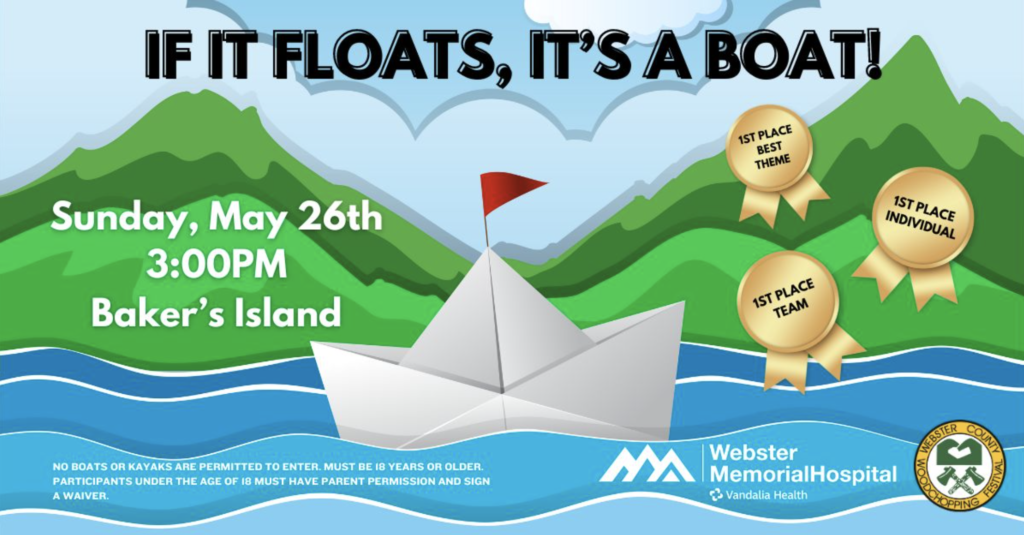 Ready to make a splash at this year’s Woodchopping Festival? Webster Memorial Hospital is sponsoring the “If it floats, it’s a boat!” event! Join us on Baker’s Island on May 26th at 3:00PM and get creative with your team for a chance to row away with some amazing awards! Do you have what it takes to float to the finish line first? Check the rules below and let’s see your best themed flotation device and costumes!