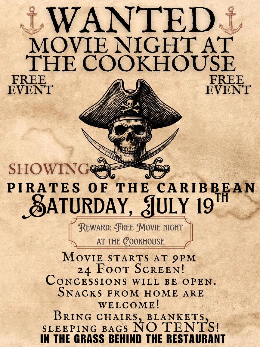 The Cookhouse at Holly River State Park is hosting another movie in the park on Saturday July 19th, 2025 at 9:00PM!