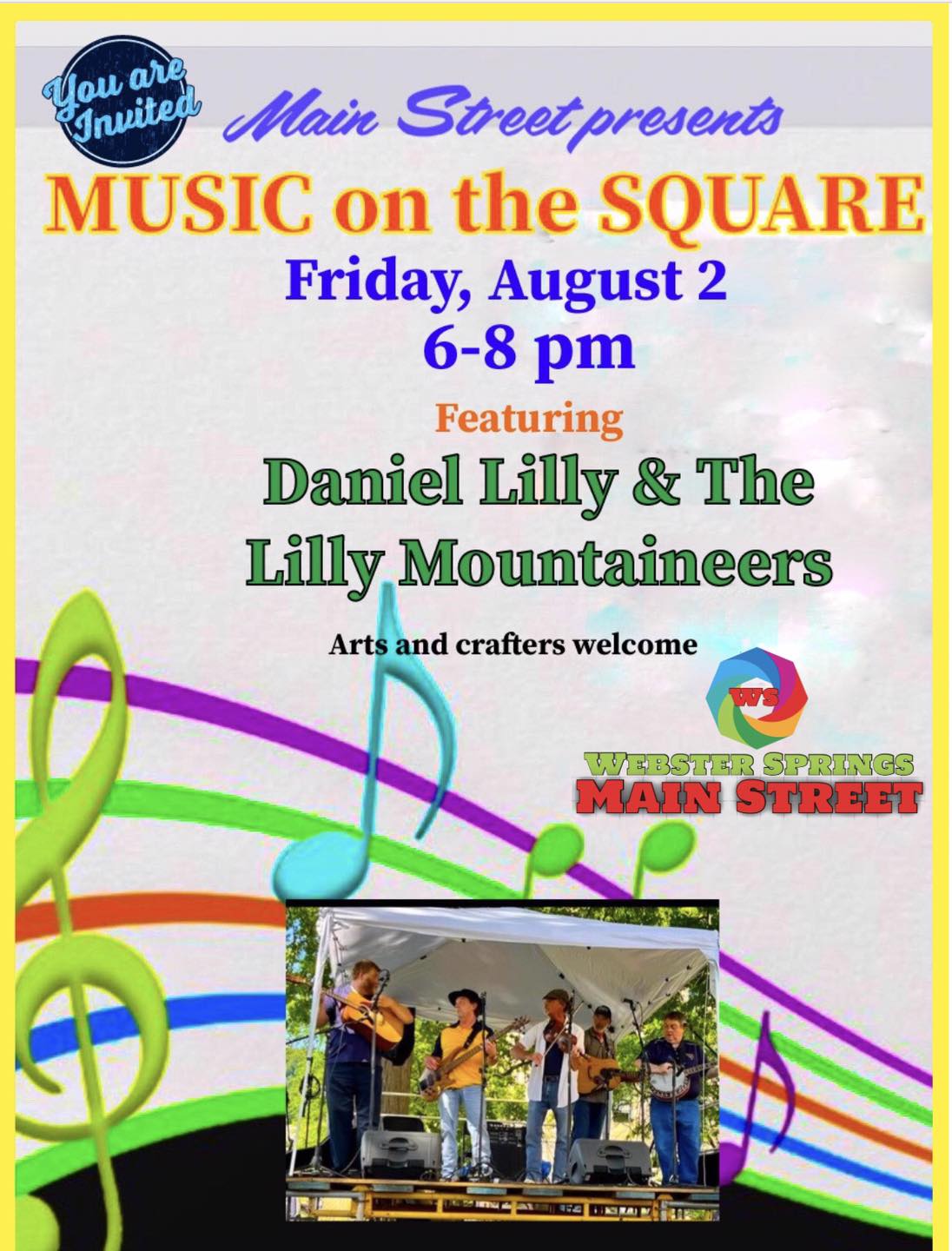 Live Music on Court Square is back again on August 2nd, 2024 from 6-8 pm in Webster Springs!