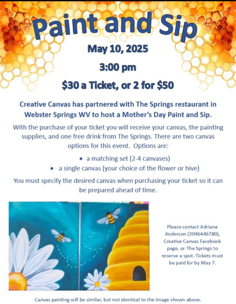 The Springs and Creative Canvas are hosting a Mother’s Day Paint and Sip on May 10th, 2025!