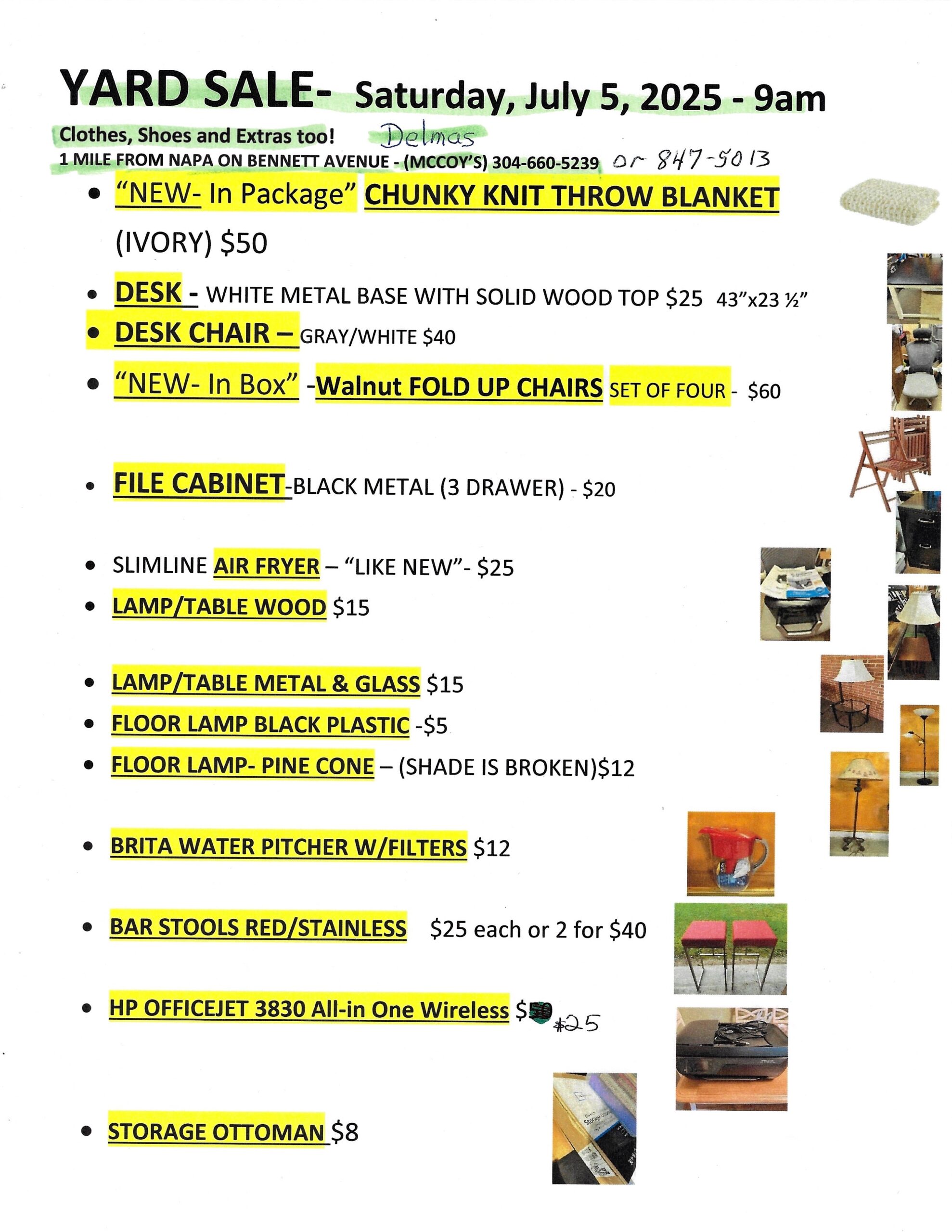 « All Events This event has passed. Yard Sale July 5 @ 9:00 am - 4:00 pm « 4th of July Fireworks! Movie in the Park » Add to calendar Google Calendar iCalendar Outlook 365 Outlook Live Details Date: July 5 Time: 9:00 am - 4:00 pm Event Category: Yard Sale