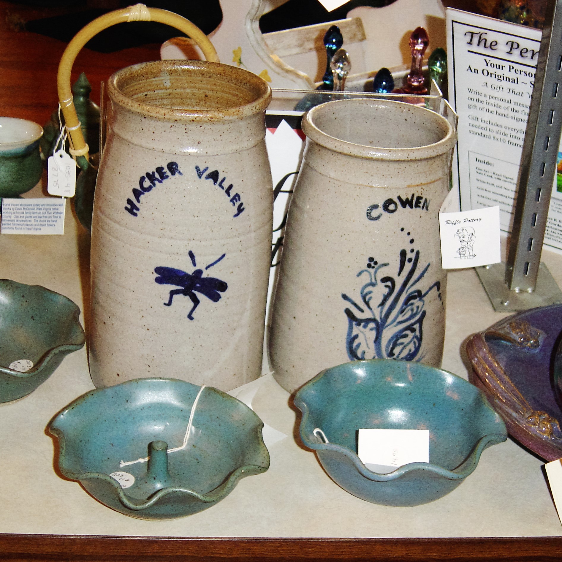 Local hand-made crafts, candles, pottery, glassware, regional books, antiques, Fiesta Ware and more.